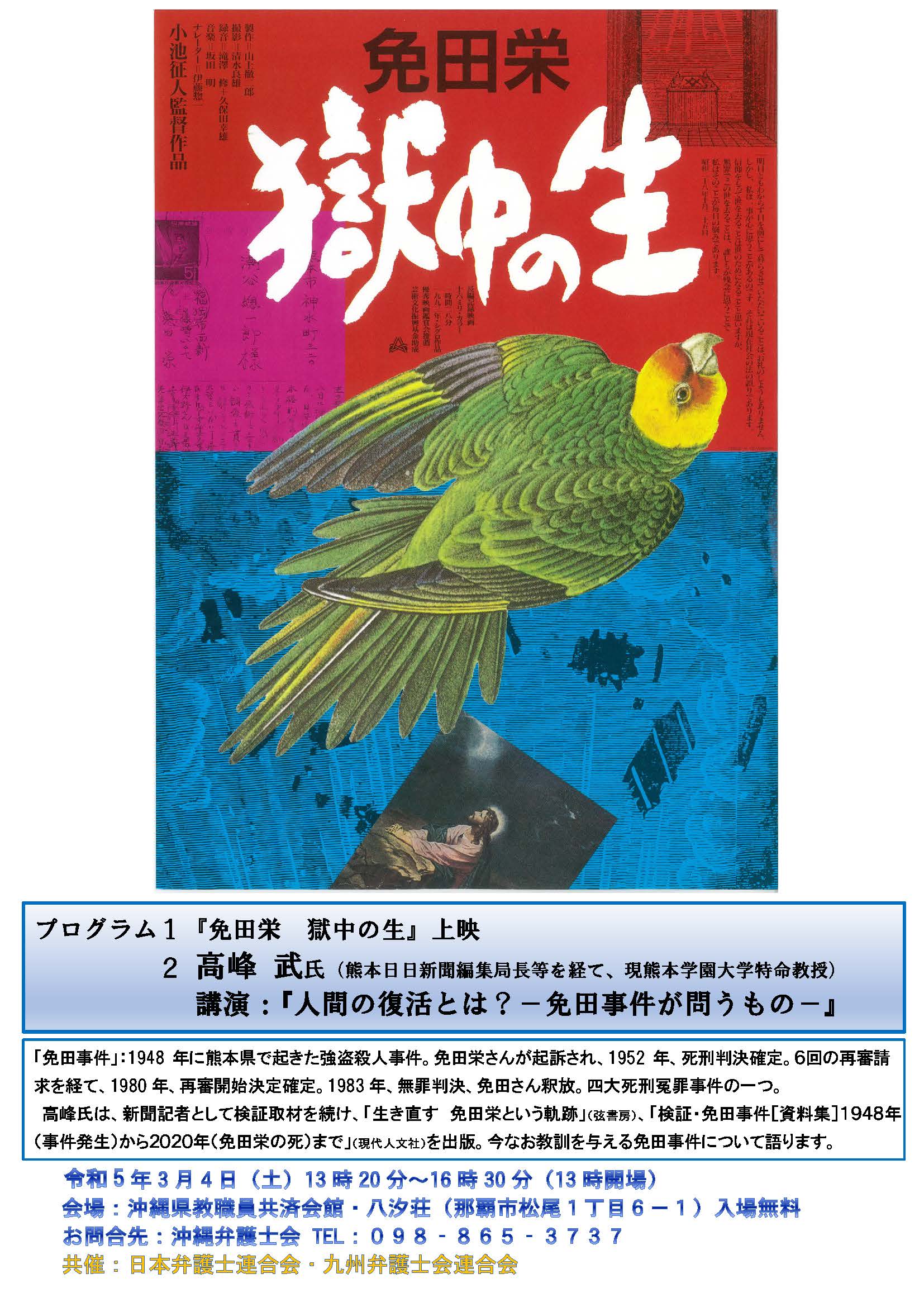 3月4日(土)「免田栄 獄中の生」上映会&高峰武氏講演会「人間の復活とは?―免田事件が問うもの―」