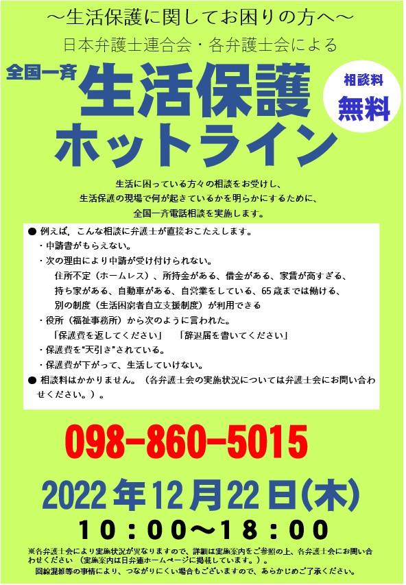 12/22(木)全国一斉生活保護ホットライン開催