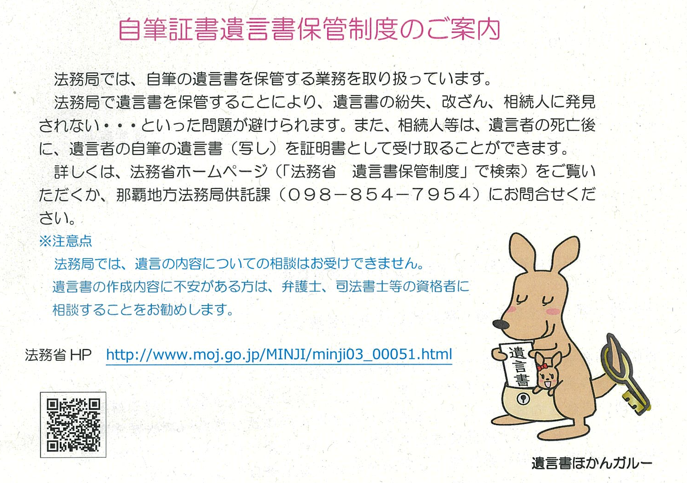 法務局の自筆証書遺言書保管制度についてご案内いたします。ご覧ください。