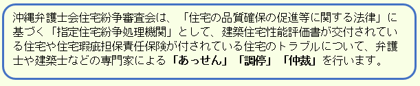 申し込みの詳細については、住宅紛争処理支援センター「住まいるダイヤル」にお問い合わせください(沖縄弁護士会では予約受付はできません)。